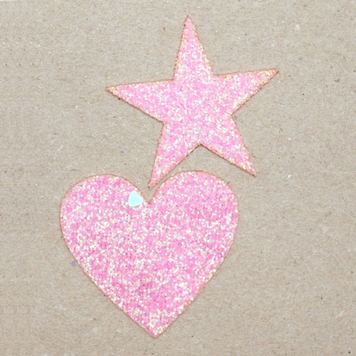 Strykemerke – rosa hjerte og stjerne glitter