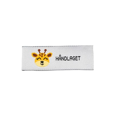 Symerke med tekst/motiv i tynn, vevd kvalitet. Kan vaskes på 40 grader. Håndlaget. Sjiraff. »