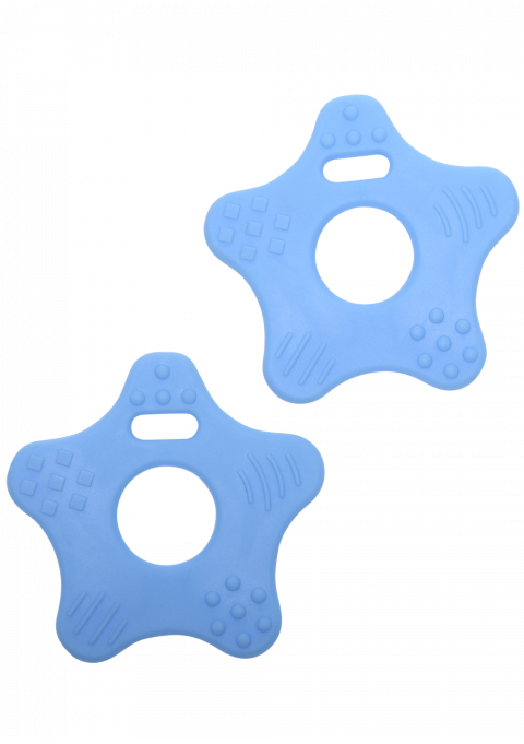 Teether rings – star baby blue, 2pcs