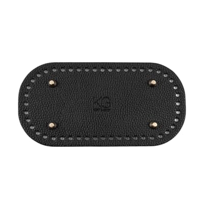 Bunn i PU-skinn til å hekle eller sy på vesker og kurver. Stødig base med 4 gullfargede metallbein på undersiden. Bunnen har 48 små hull(Ø4.5mm) langs kanten. Nikkelfri.