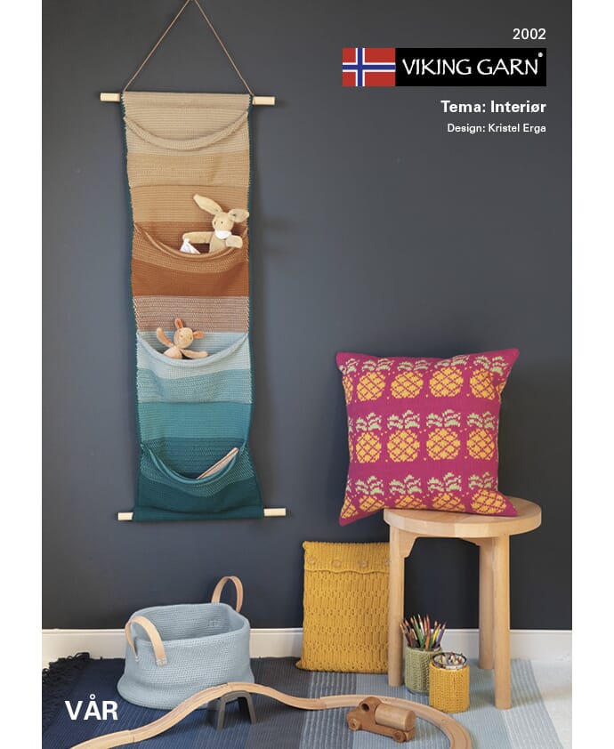 Oppskriftshefte fra Viking Garn. med mange interiøroppskrifter; kluter, hånkle, pute, ipaddeksel, teppe, kurv og mer..