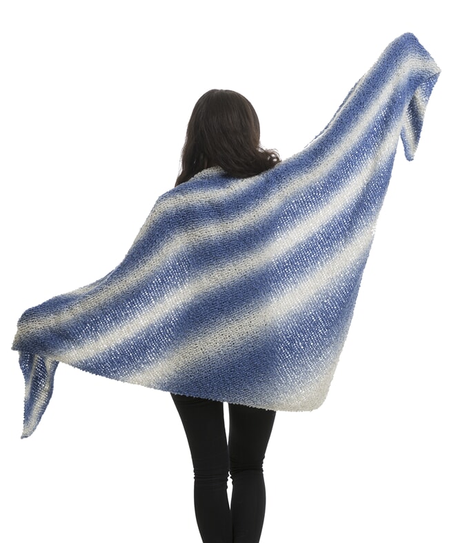 Sjal legg opp 3 m som pleddmønster 1, øk med 1 m i hver side til du har 2 til 3 m trå igjenn til å felle av med.