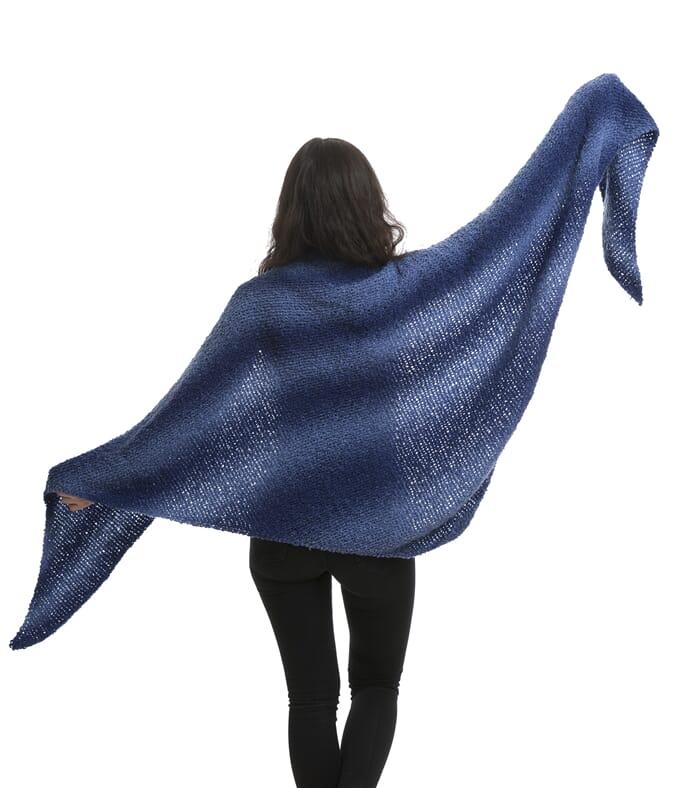 Sjal legg opp 3 m som pleddmønster 1, øk med 1 m i hver side til du har 2 til 3 m trå igjenn til å felle av med.
