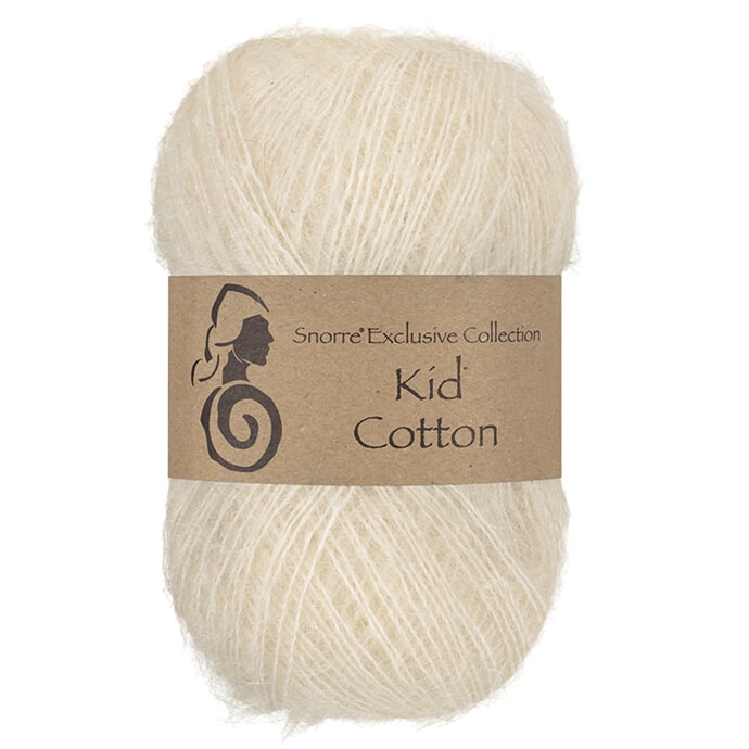 Kid Cotton består av 70 % kid mohair og 30 % bomull.