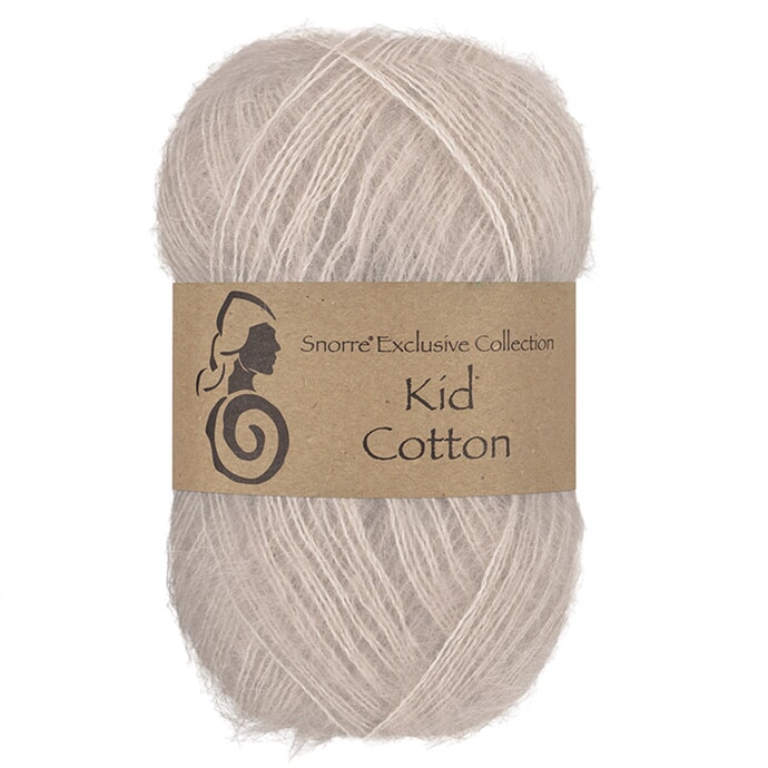 Kid Cotton består av 70 % kid mohair og 30 % bomull.