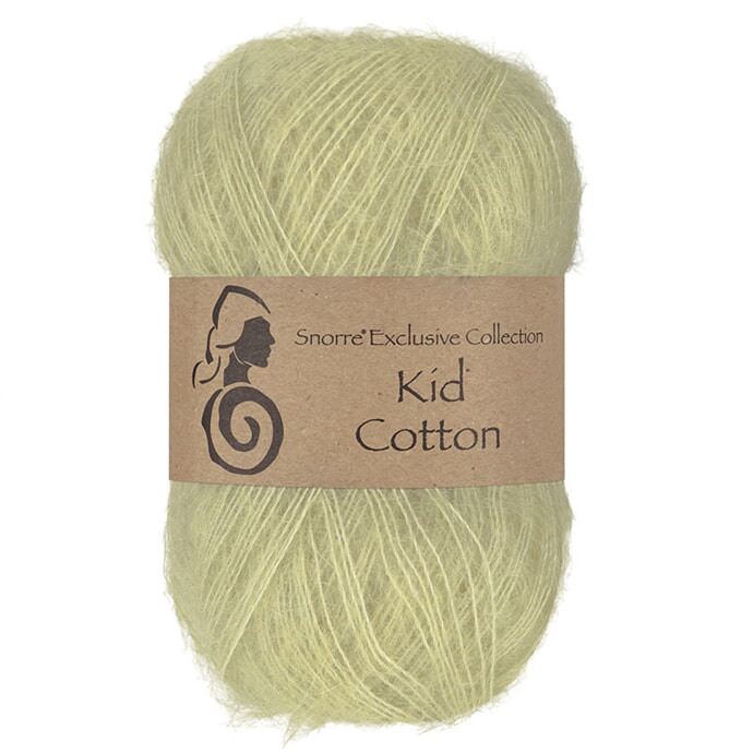 Kid Cotton består av 70 % kid mohair og 30 % bomull.