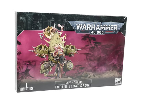 Dette flerdelte plastsettet inneholder komponentene som er nødvendige for å sette sammen en Foetid Bloat-drone. En enorm, skremmende sammensmelting av maskin og råtnende kjøtt. Fronten på modellen domineres av et ryggskjold som kan settes sammen som ett av tre alternativer – ett med et Nurgle-symbol utpekt i hodeskaller, ett med symbolet inngravert i ryggskjoldet, og ett med en heslig tannet munn dekket av pustler, tentakler og slanger som dingler fra innsiden. Den leveres bevæpnet med to pestspyttere og en pestsonde. Uansett hvilken ryggskjold du velger, kan pestspytterne erstattes med enten en kraftig pestkaster eller en kjøttklipper (som ser like grusomt ut som det høres ut…). Baksiden av modellen er et opprør av grufulle detaljer, med obskønt strukket hud som søler over metallstrukturene som knapt inneholder den.