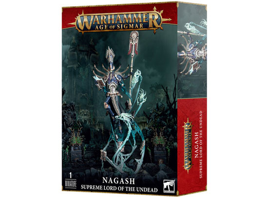 Nagash Supreme Lord of the Undead inneholder alt du trenger for å bygge 1 Nagash Supreme Lord of the Undead. Miniatyren kommer utstyrt med et utvalg av Nagashs mest dyrebare gjenstander, som Crown of Sorcery, Alakanash Staff of Power, Zefet-nebtar Mortis Blade, Morikhane Black Armour og ni eldgamle bøker som inneholder fryktelige hemmeligheter.